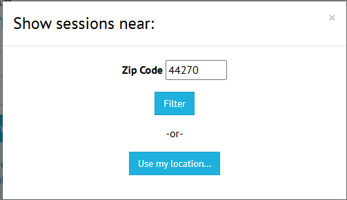 The “Show sessions near:” box will appear. In the Zip Code field, type in 44270 Rittman’s zip code. Then click the “Enter” key on your keyboard.