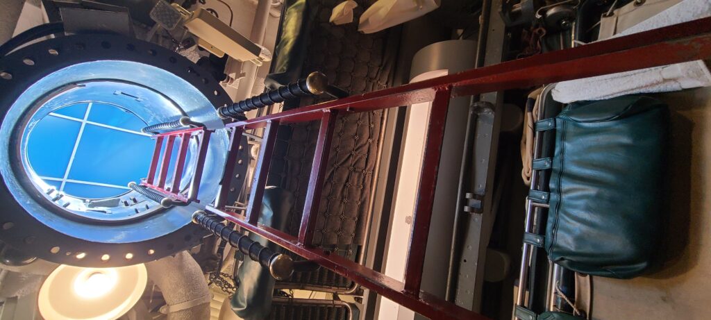 The USS Cod is NOT handicap accessible. To operate in the radio room, you must be able to climb down the deck hatch ladder.